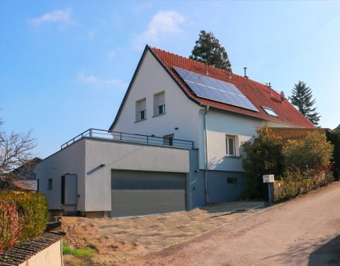 Construction d’une maison neuve à Oberschaeffolsheim (67) La maison présente un rez-de-chaussée surélevé de 60 cm par rapport au niveau…